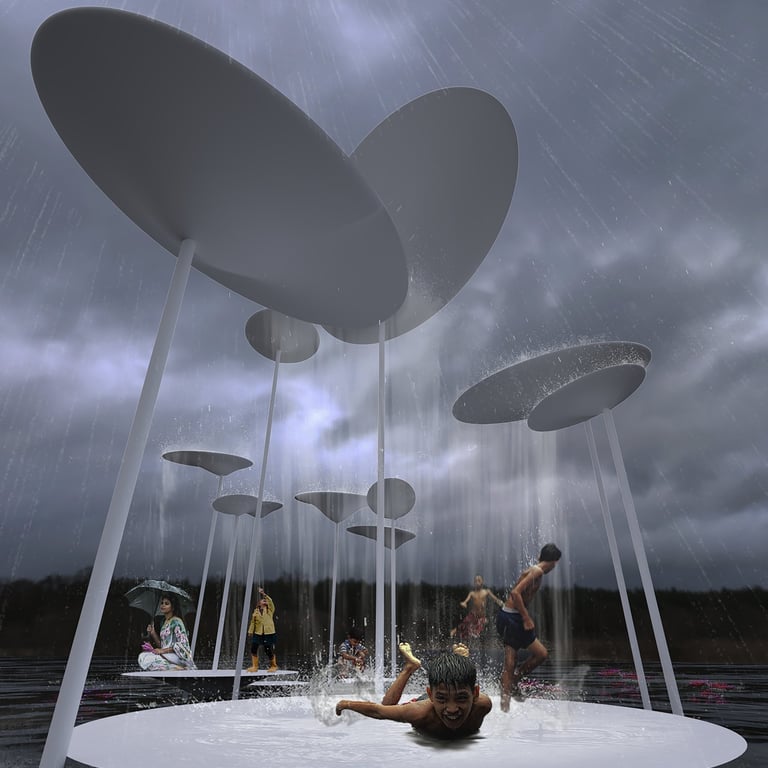 The most compelling characteristic of rain is its power to generate life. As Rumi said, « It is rain that grows flower». This whole connection of rain with the germination process is closely related to one of the most basic human desire- the desire for freedom and enjoyment of life. We wanted to translate this close interrelation of life with rain by means of architecture.